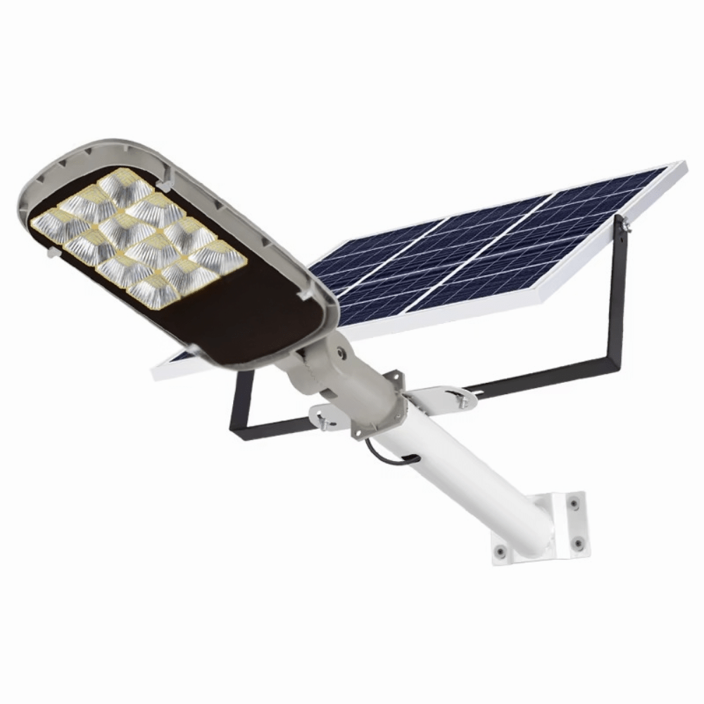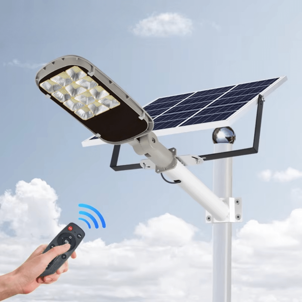 Ισχυρός και αποδοτικός ηλιακός προβολέας 500W, ιδανικός για δρόμους, αυλές, γκαράζ και επαγγελματικούς χώρους. Διαθέτει τηλεχειριστήριο και αυτόματη λειτουργία αισθητήρα φωτός, ώστε να ανάβει και να σβήνει μόνος του. Κατασκευασμένος από ανθεκτικό αλουμίνιο, με προστασία IP65 και θερμοκρασία φωτισμού 6500K (λευκό ψυχρό φως ημέρας), προσφέρει άνεση και ασφάλεια με μηδενικό κόστος ρεύματος.